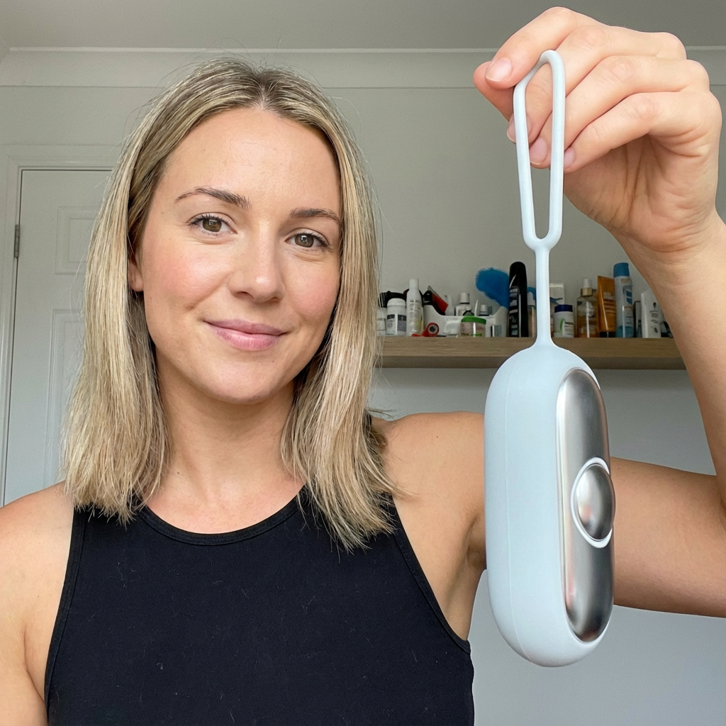 Dozzy® is a handheld calming tool that gently stimulates a calming point in your palm (PC-8) using soft microcurrent pulses—based on centuries of acupressure wisdom. It’s designed to help your nervous system relax, quiet your thoughts, and naturally ease into deeper, more peaceful sleep